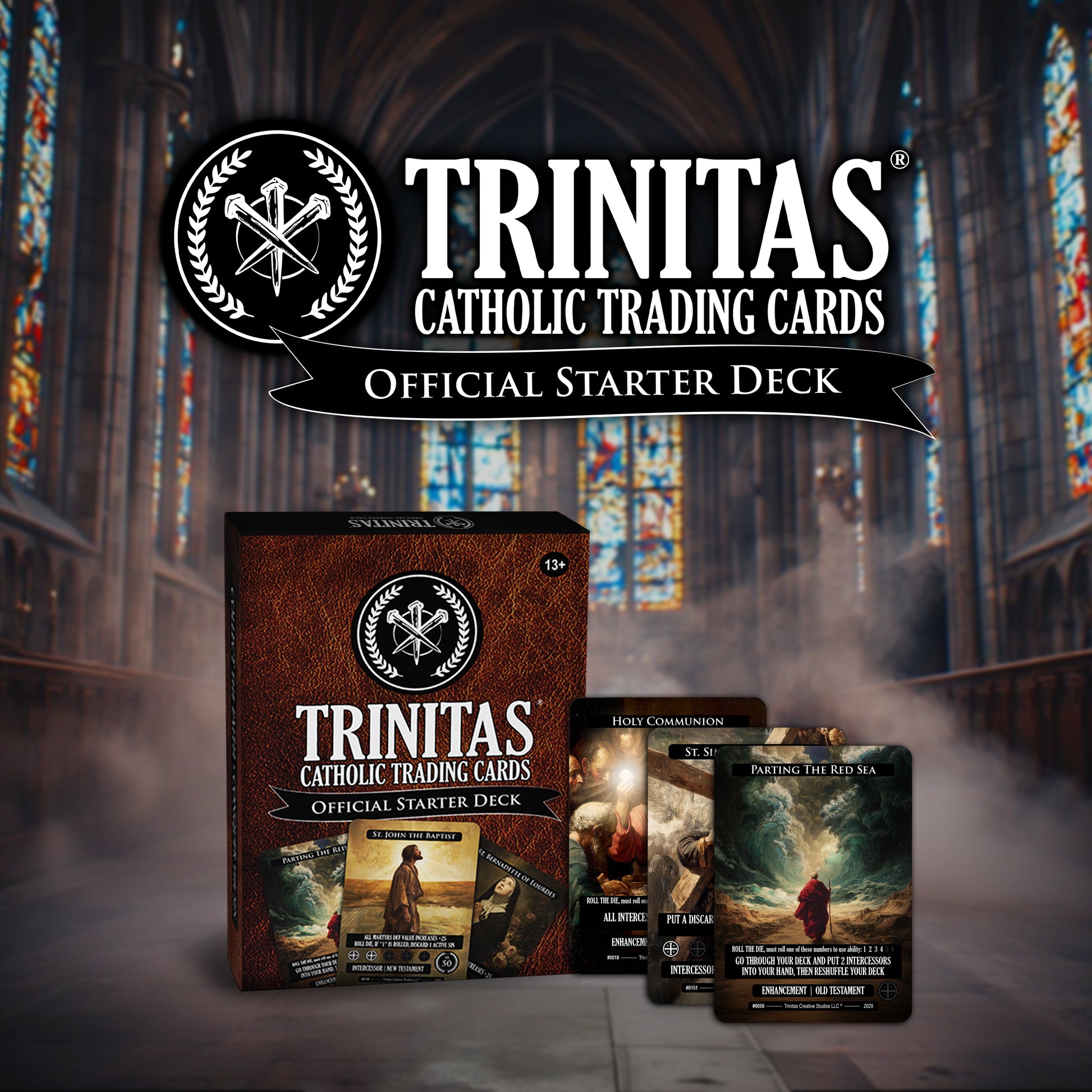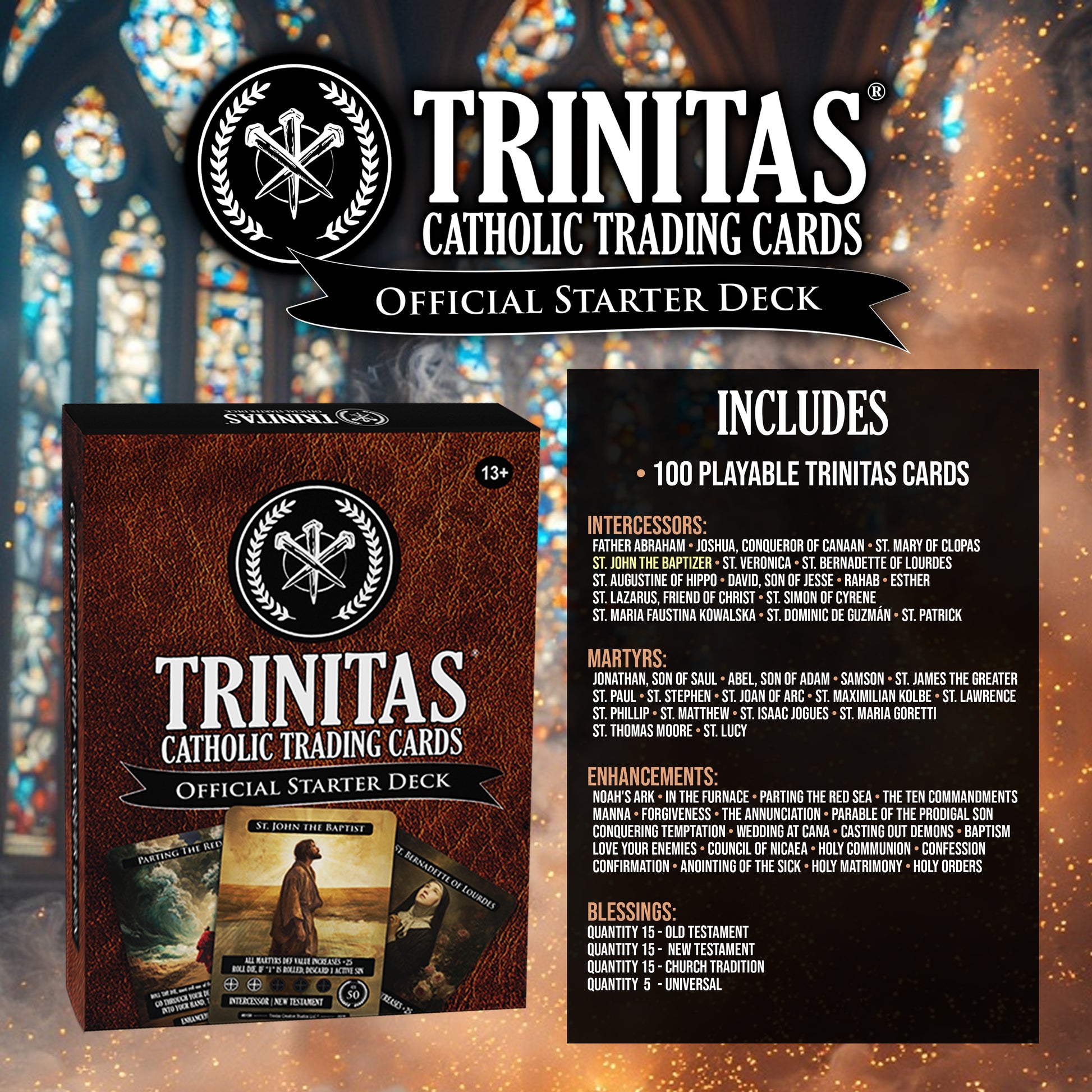 The Trinitas Official Starter deck is filled with 100 playable cards.